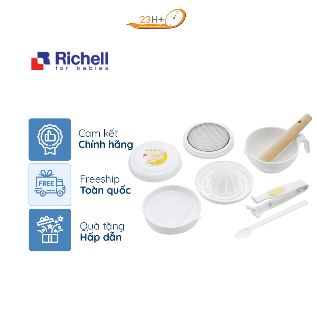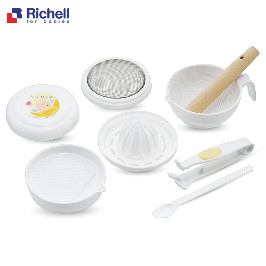 Bộ chế biến ăn dặm kiểu Nhật Richell cung cấp các vật dụng cần thiết và hữu ích nhất để mẹ có thể chế biến các món ăn cho bé với độ thô phù hợp với từng giai đoạn ăn dặm của trẻ.